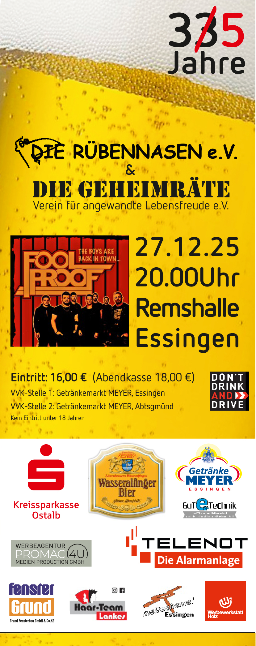 35-jähriges Bestehen/Jubiläum und DIE GEHEIMRÄTE ihren 35. Geburtstag als e.V. Zur Geburtstags- und Jubiläumsparty sind FOOLPROOF –